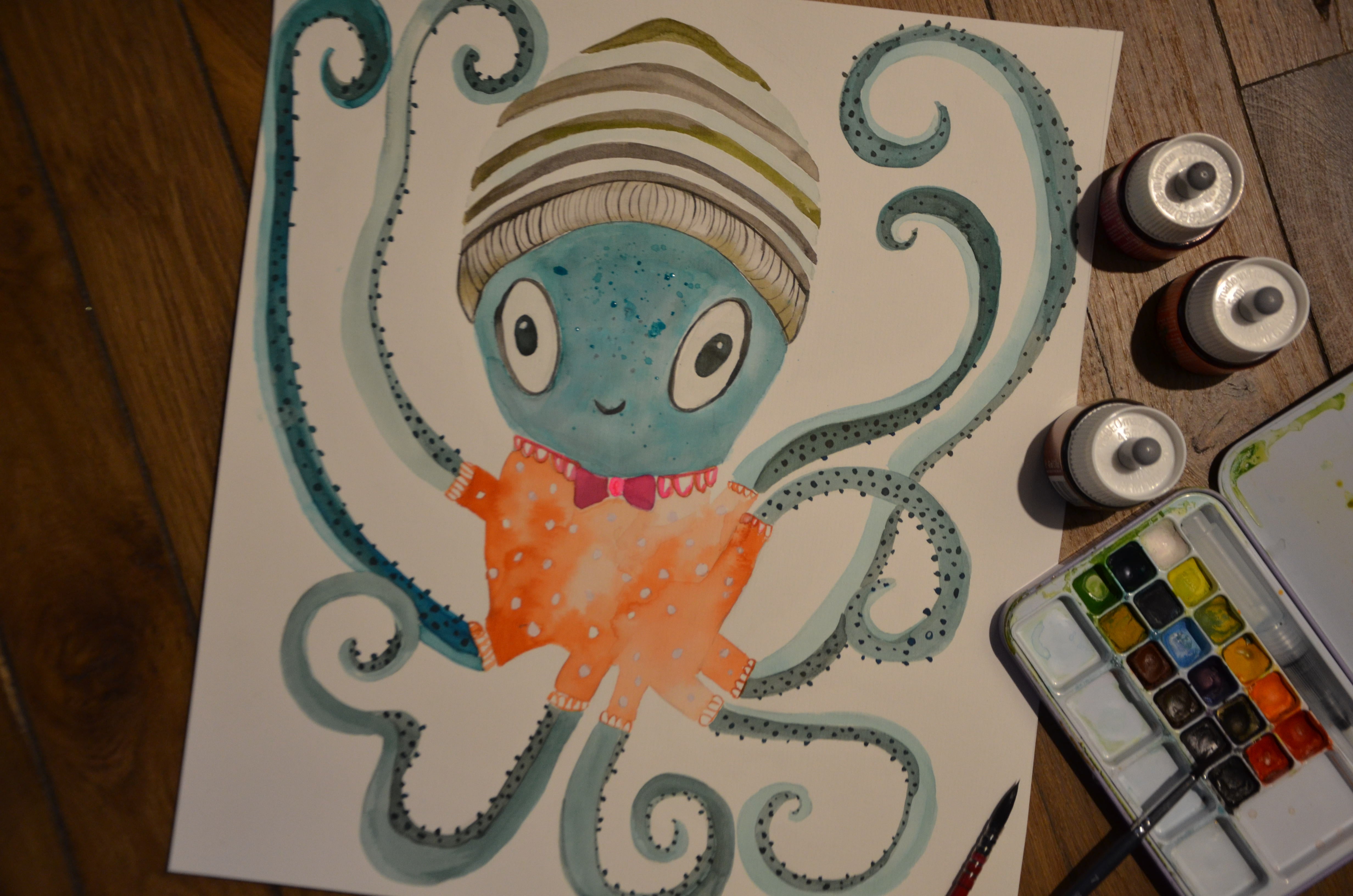 Atelier aquarelle, fabrication d'une pieuvre colorée / 3-6 ans