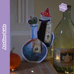 Nous aurons une potion au "jus de citrouille pourrie" et une autre au "philtre de mort". Les enfants se lanceront dans la fabrication des bouteilles et de l'étiquette en utilisant l'aquarelle. Nous nous servirons du sel et du café pour vieillir le papier et obtenir des effets. Les bouchons seront amovibles.