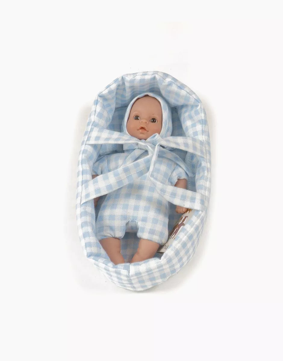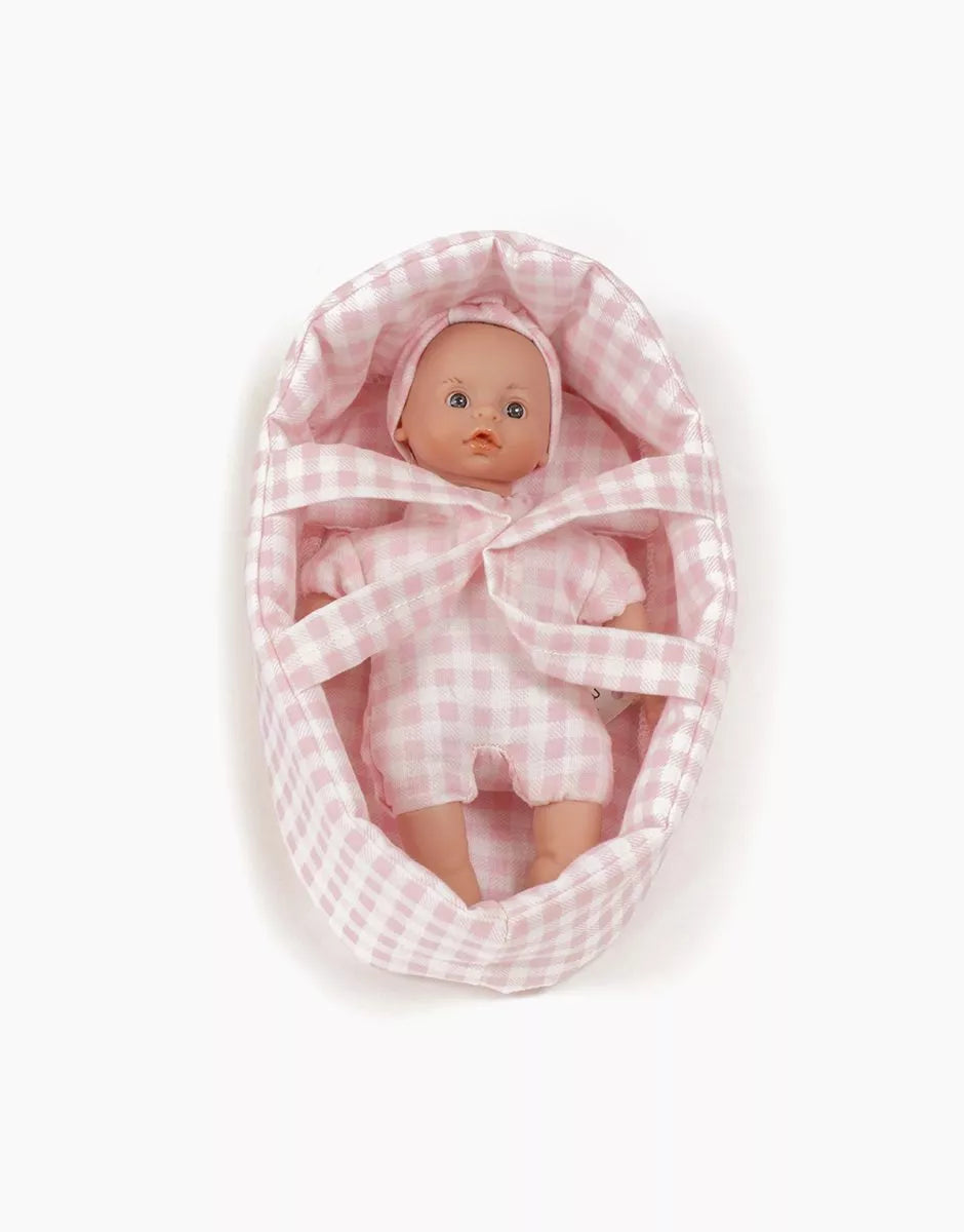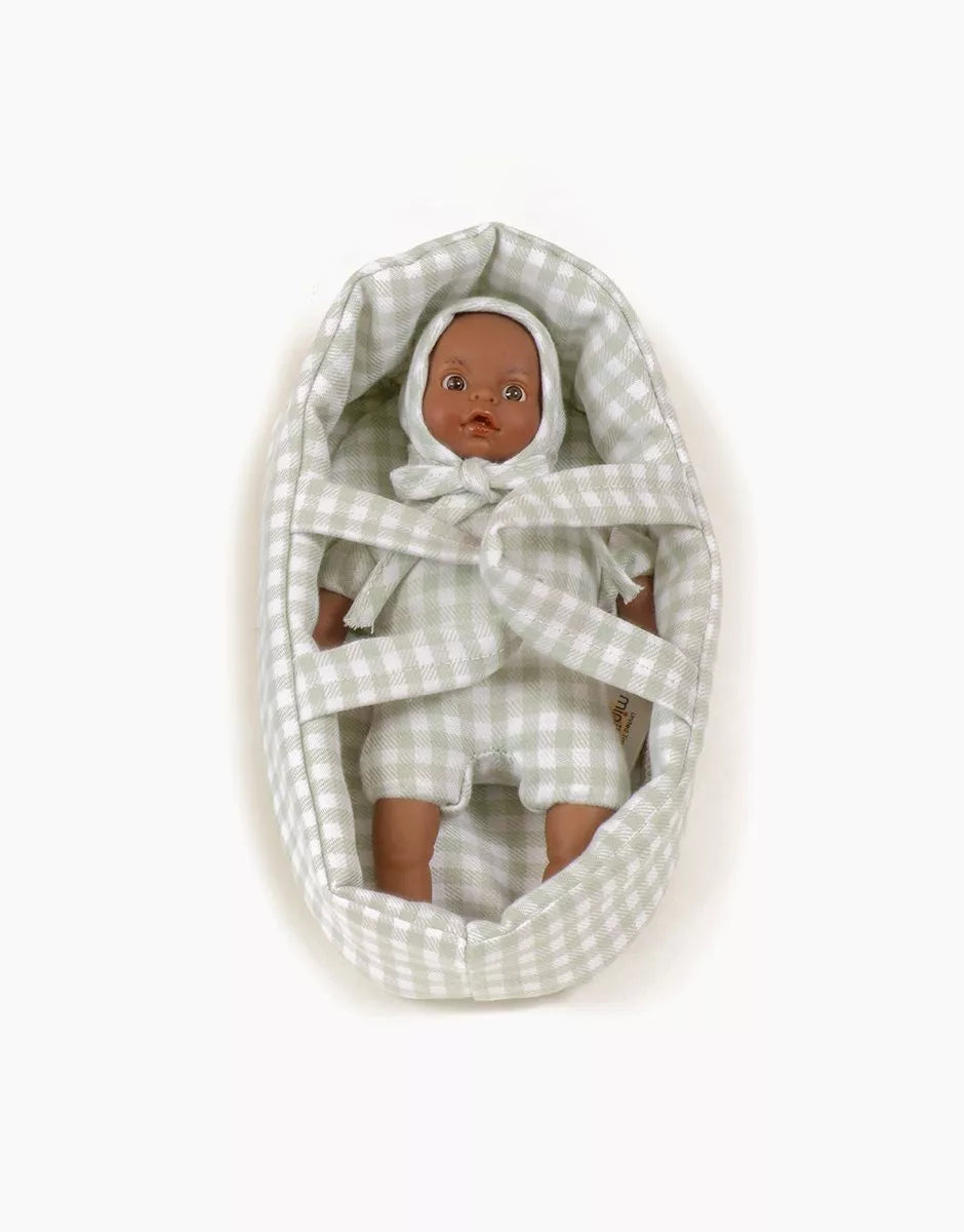 Mini poupée au corps souple de chez Minikane avec son couffin. Idéal pour les enfants qui ont soif de jolies poupées à collectionner.