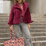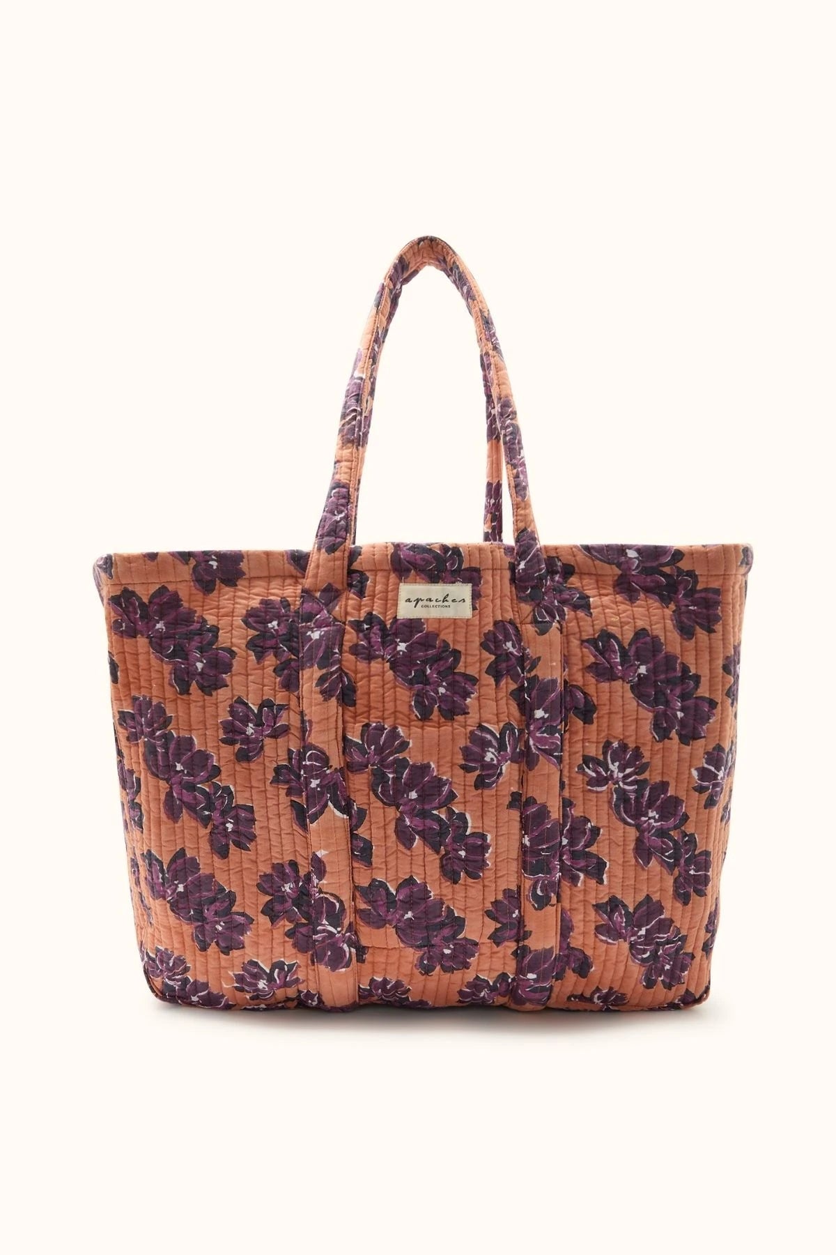 Cabas Samba de chez Apaches Collections. Idéal en grand sac à main à la ville ou au travail, ou pour une escapade le week-end, ce cabas offre un porté épaule confortable grâce à ses deux grandes anses. Coloris Violeta Rust.