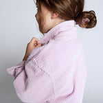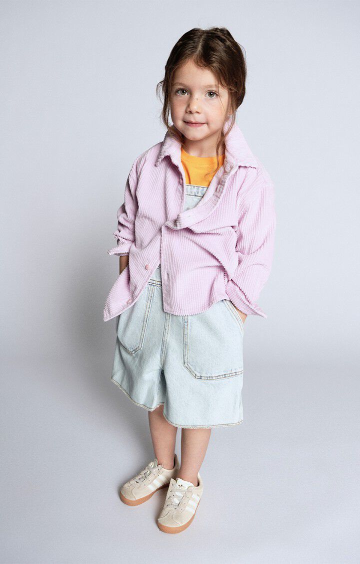 La chemise Padow pour enfant, à manches longues, de chez American Vintage est conçue dans un velours côtelé iconique, doux, souple et lumineux. Son look rétro, renforcé par un traitement vintage, la rend facile à porter au quotidien. À porter ouverte sur un t-shirt pour un style casual ou fermée avec le pantalon assorti pour un ensemble facile et ultra confortable.