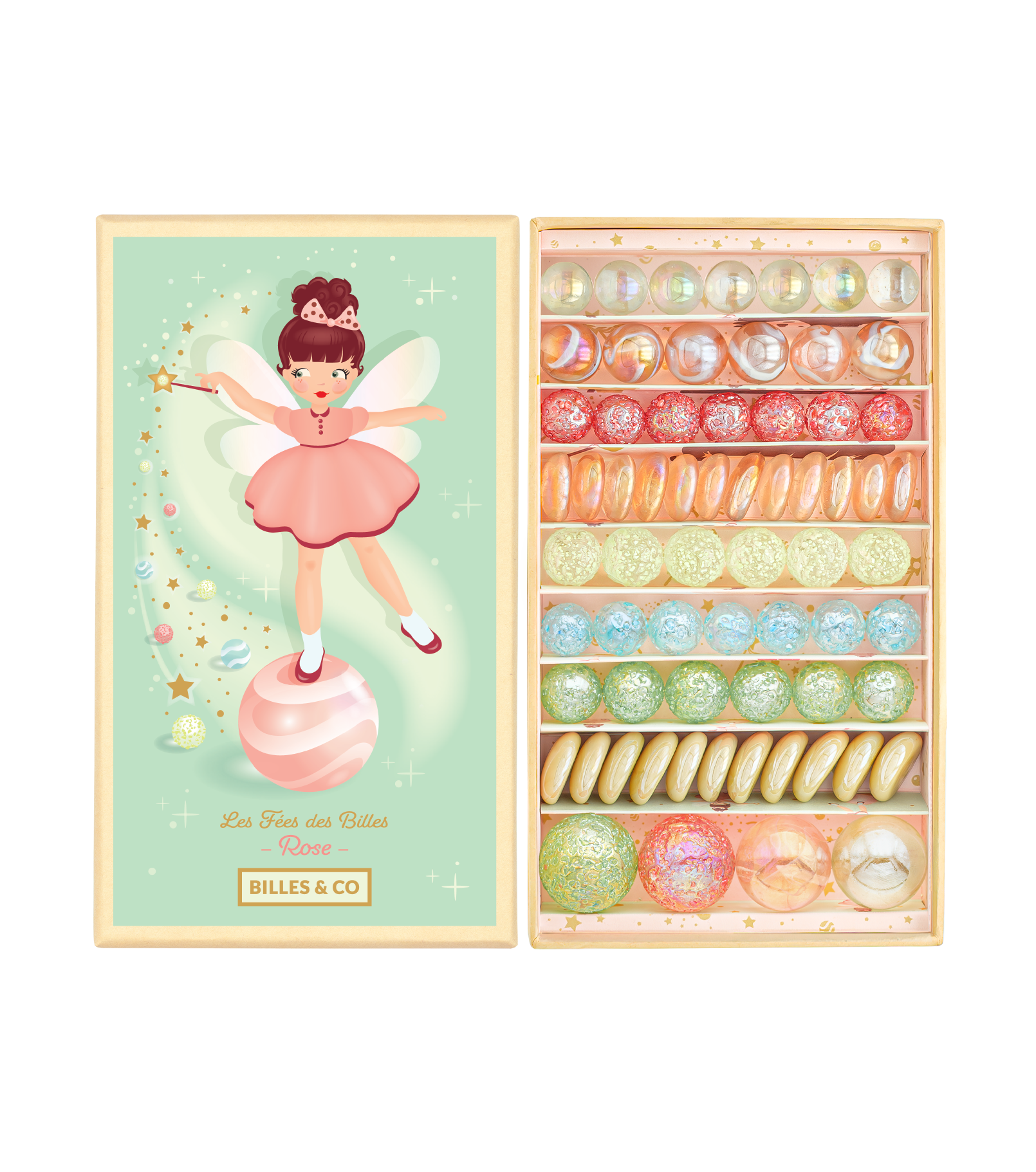 Chaque box contient 5 variétés de billes, 4 variétés de calots, et 2 variété de galets. Vendu dans une jolie boîte. Existe en plusieurs thèmes et coloris.