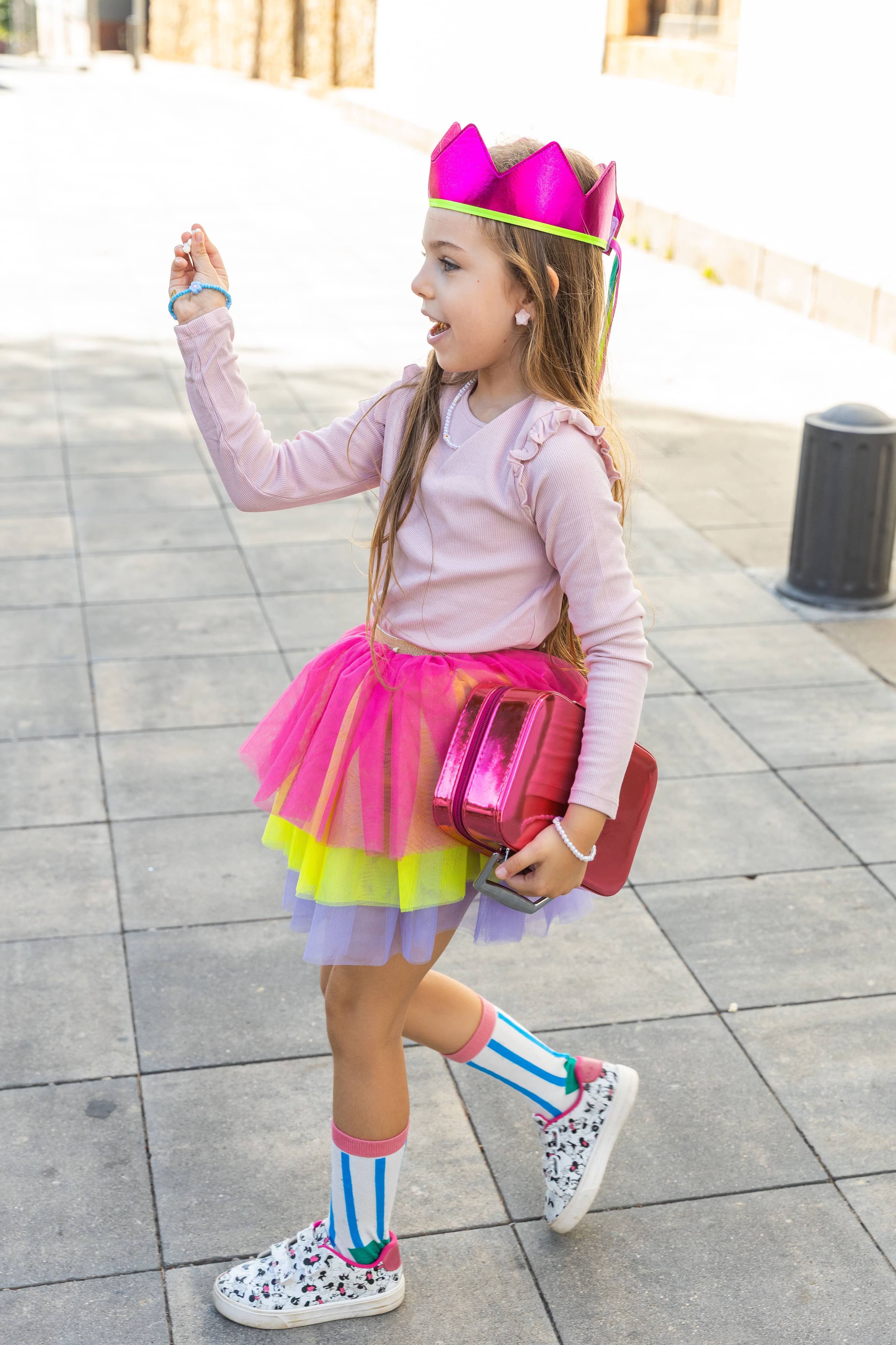 Conçue en taille unique pour les enfants de 3 à 8 ans, elle s’enfile facilement grâce à sa taille élastiquée confortable. Un vrai caméléon du dressing : parfaite pour les anniversaires, les fêtes costumées, les spectacles ou tout simplement pour ajouter une dose de couleur dans le quotidien.