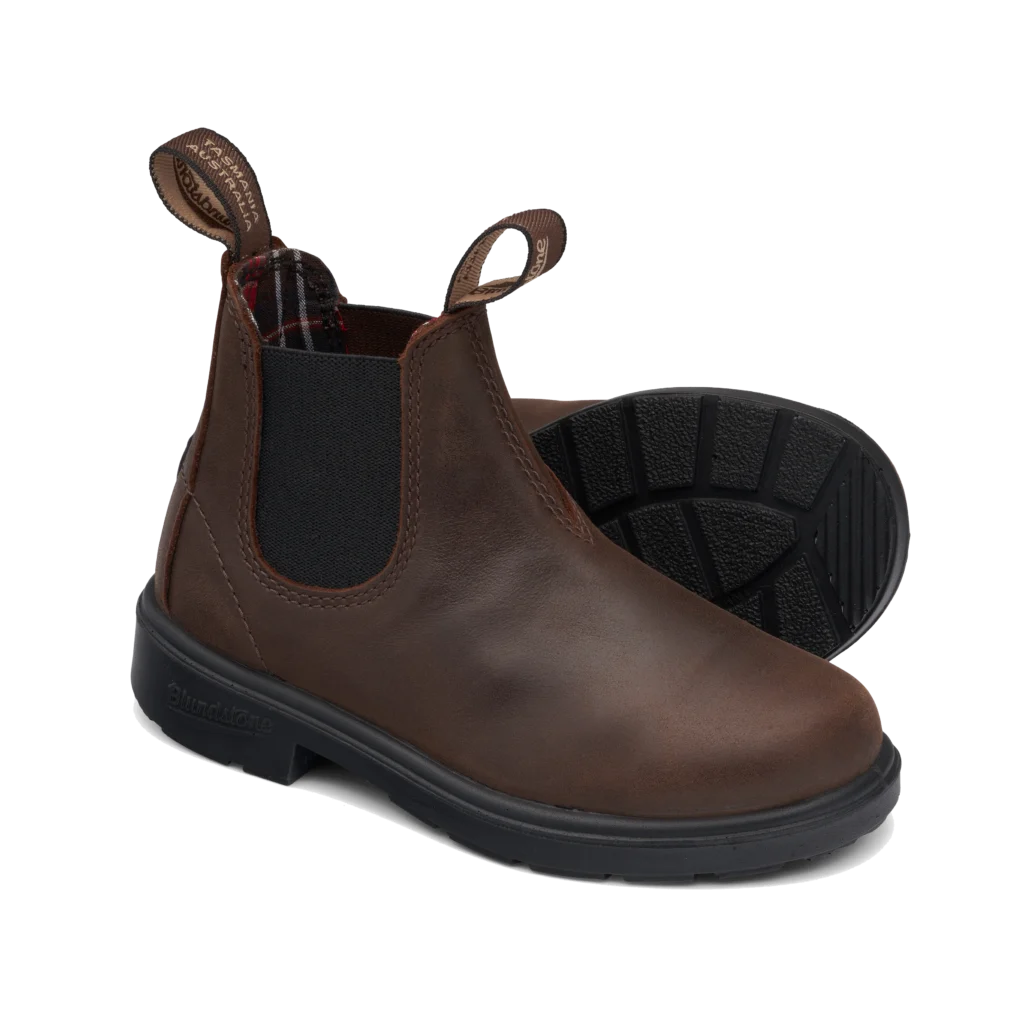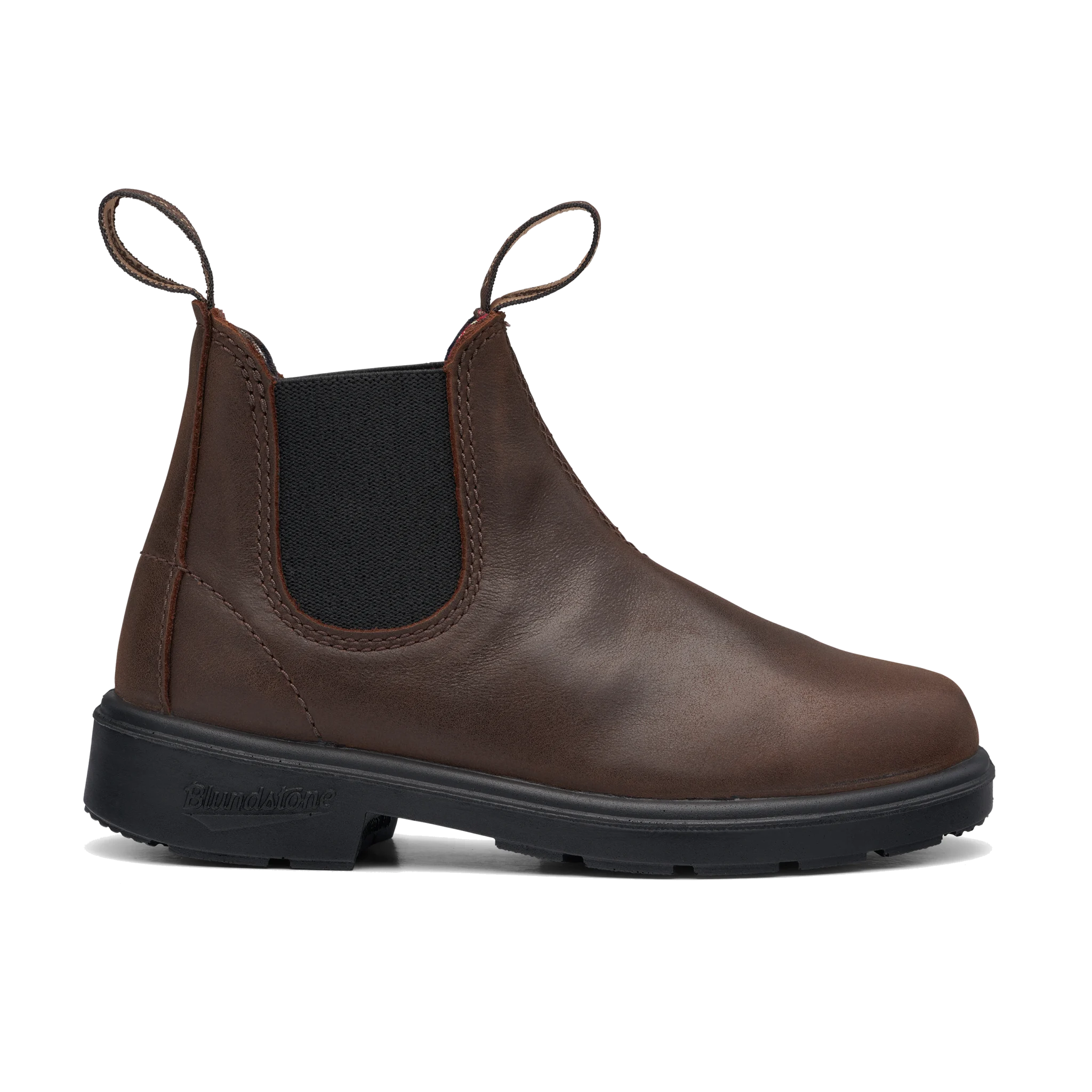 Classic Chelsea Boots enfant Blundstone en cuir déperlant marron glacé avec intérieur doublé et bout rond.