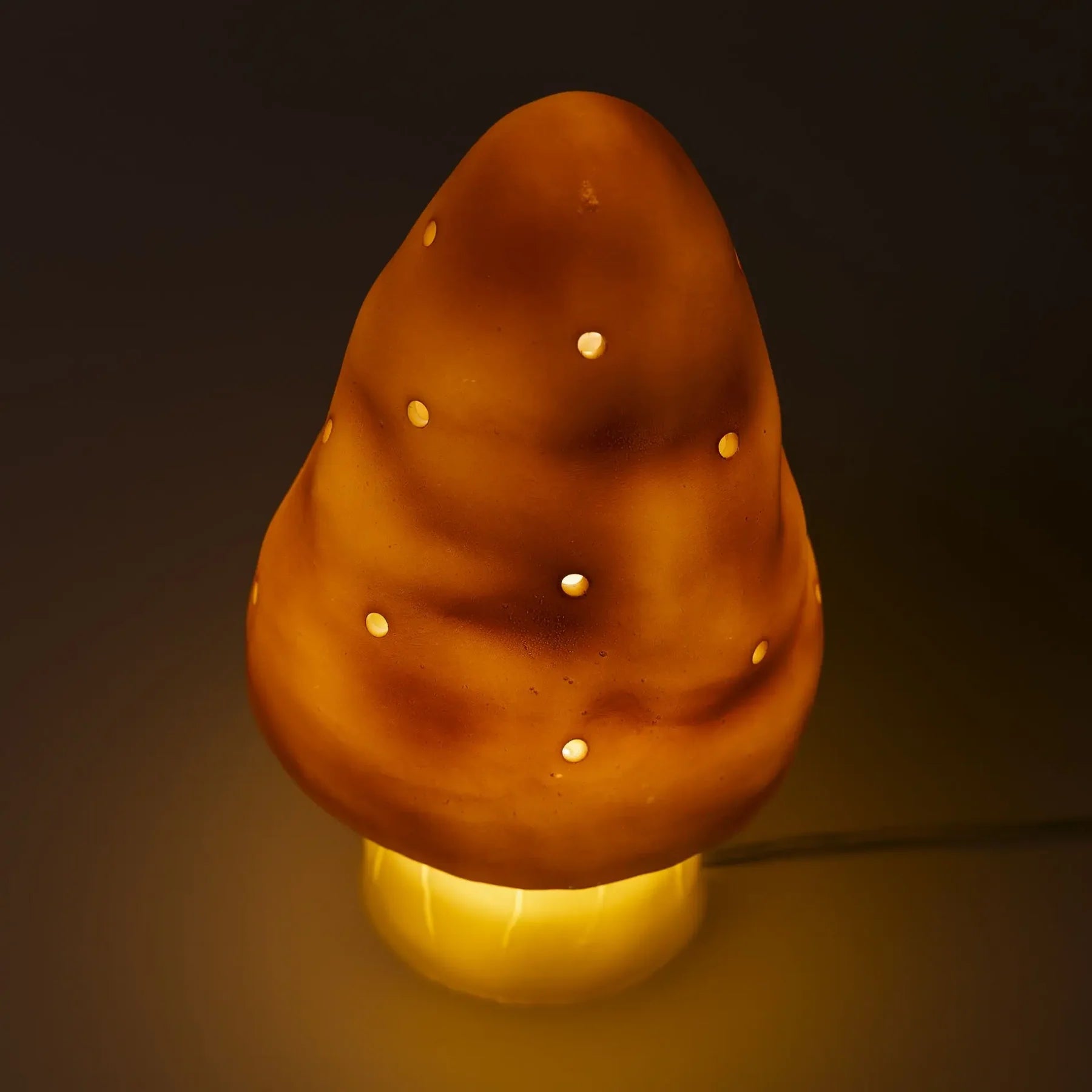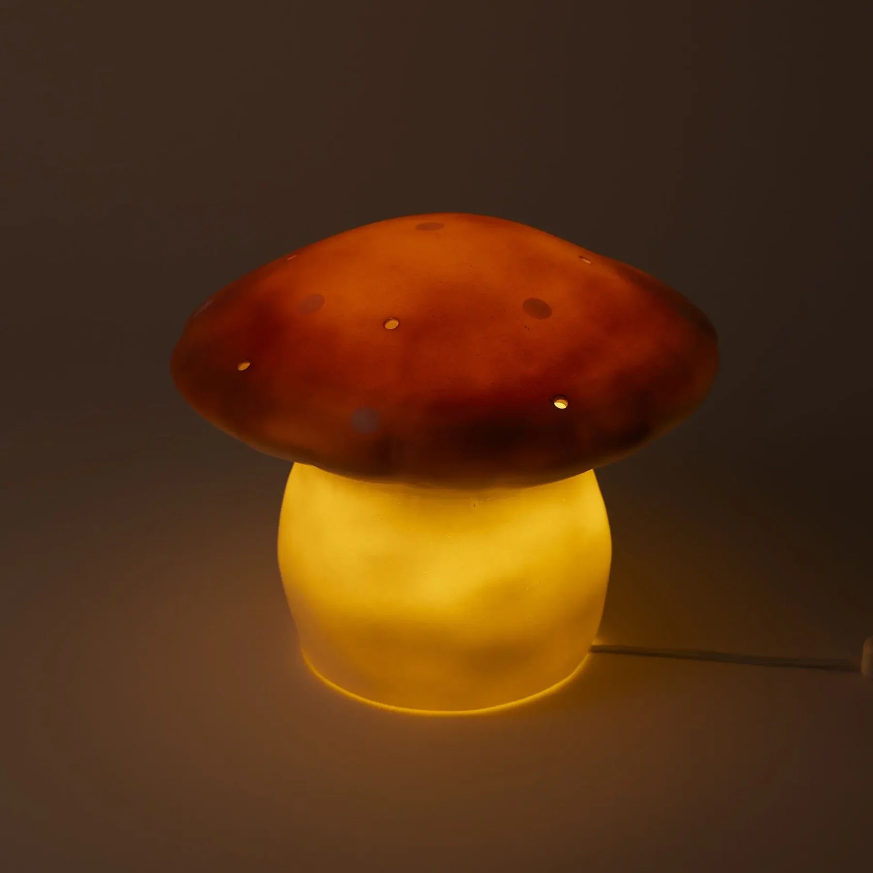 Installez la dans votre intérieur et la pièce se transformera en une forêt magique. Son chapeau en terre cuite, orné de minuscules points rouges diffuse une douce lumière.