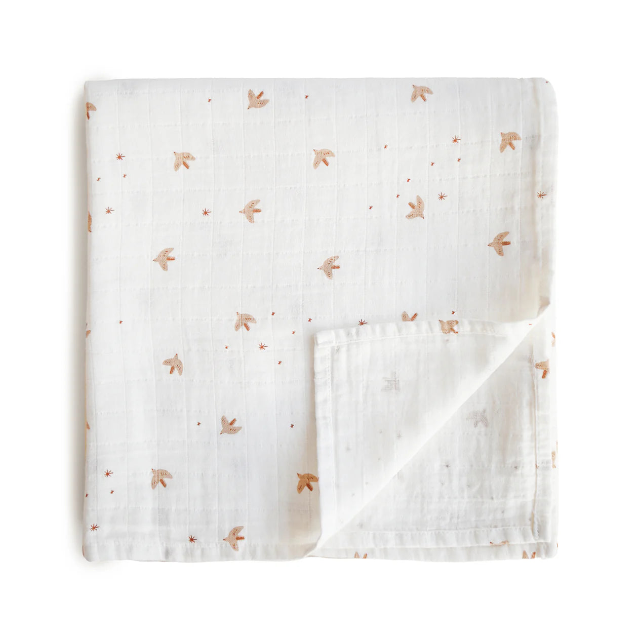 Maxi lange de la marque Mushie. En coton bio. Parfait pour les repas, l'emmaillotage ou comme petite couverture d'été.