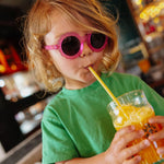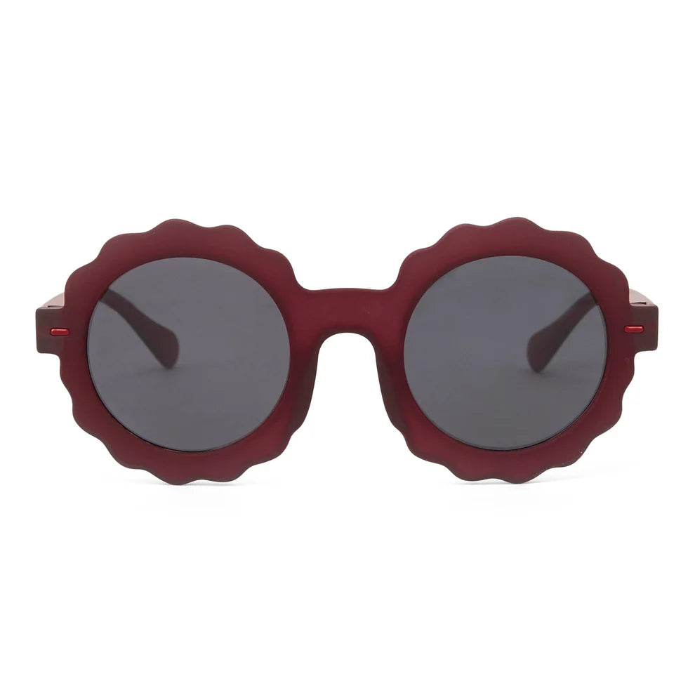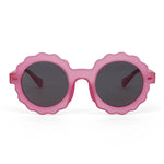 Lunettes de soleil pour enfants, modèle Chamy de chez Hello Hossy. Dès 2 ans. Forme fleur, tendance. Monture toucher mat, verres polarisés Catégorie 3, protection UV400, légère et confortable en polycarbonate recyclé.