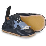 Chausson Easy Peasy en cuir et teinture végétal. Modèle Blublu avec patin antidérapant, idéal pour les premiers pas ou pour jouer en toute sécurité.