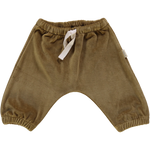 Pantalon Cannelle de chez Poudre Organic, en velours. Intemporel et mixte. Lien à la taille.