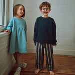 Pantalon Pomelos en Toile épaisse de Poudre Organic intemporel et mixte, coupe 7/8ème avec taille élastique et cordon de serrage à l'intérieur de la ceinture.