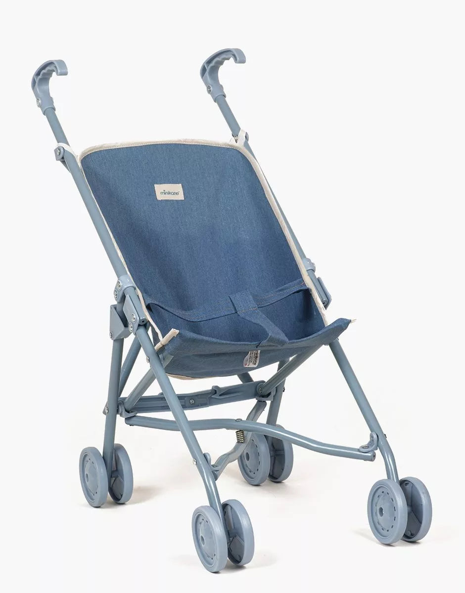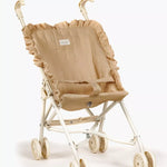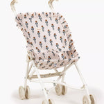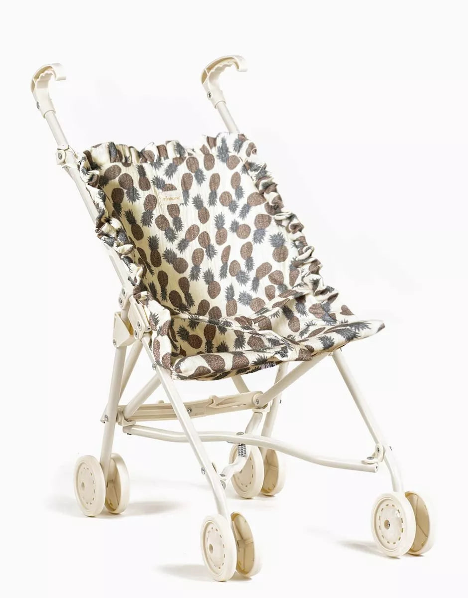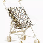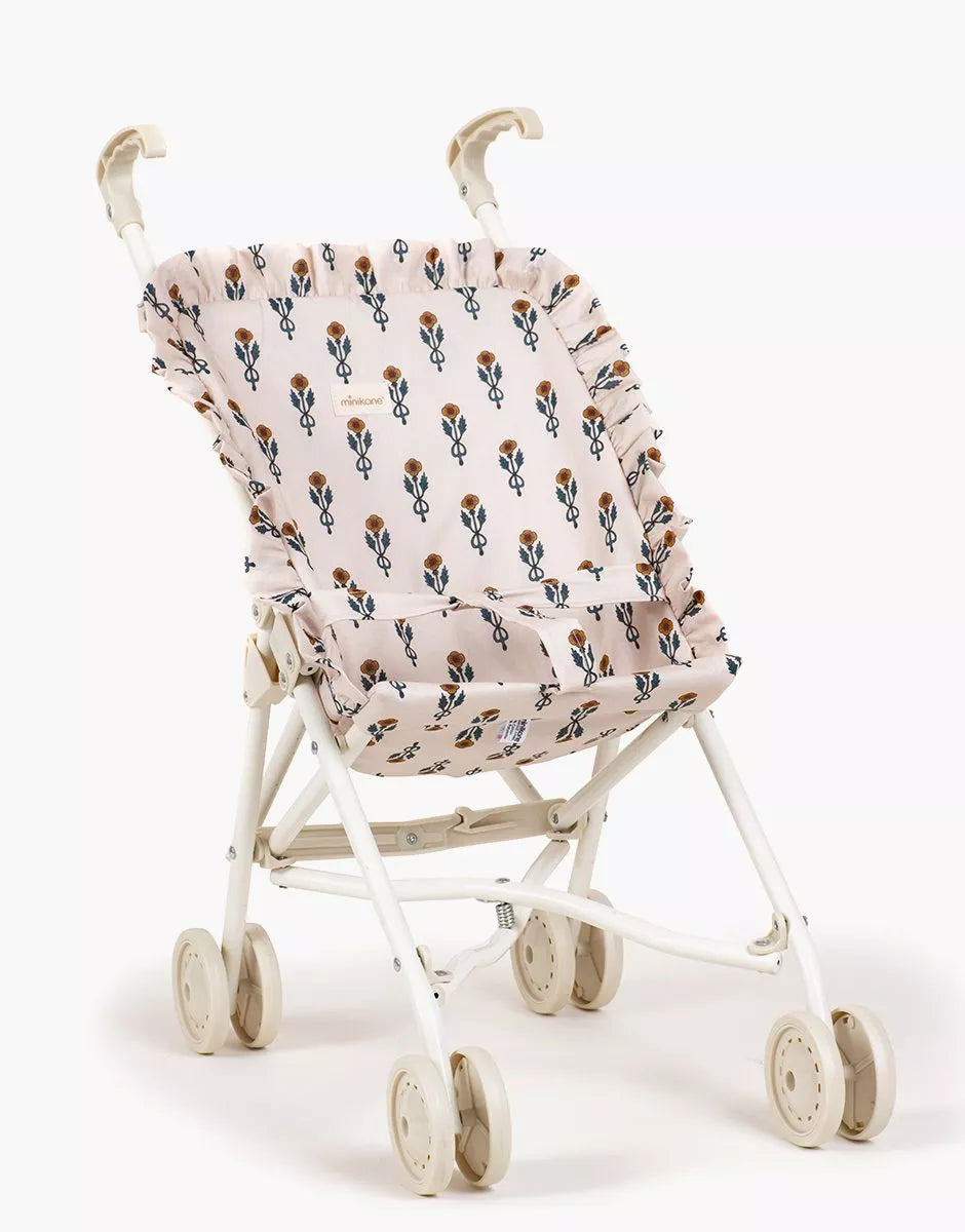 Poussette pour poupées de chez Minikane avec assise en coton, ou coton enduit, pouvant se plier.