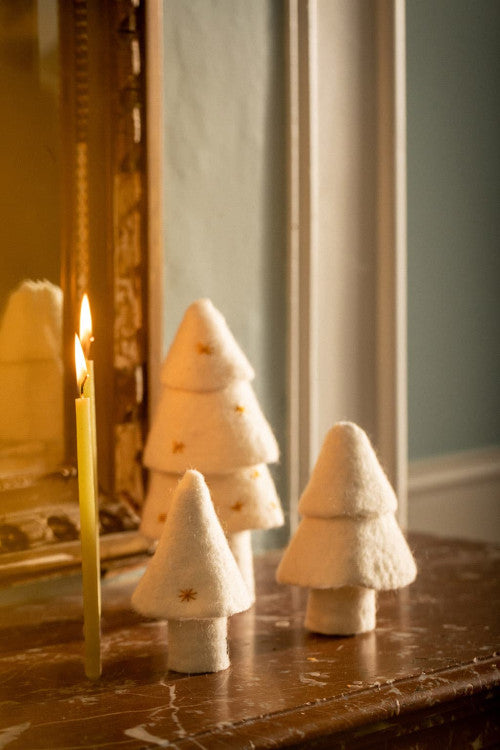 Pour créer une ambiance de Noël ou simplement une atmosphère poétique, le sapin en feutre Muskhane vous comblera. Avec ses petites broderies de-ci, de-là, tout le monde l'adore ! Confectionné entièrement à la main par dess artisanes népalaises, il est proposé en 3 tailles et formes différentes pour créer une ambiance qui sera remarquée.