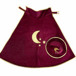 La cape de magicien est en velours bordeaux et doublure dorée !