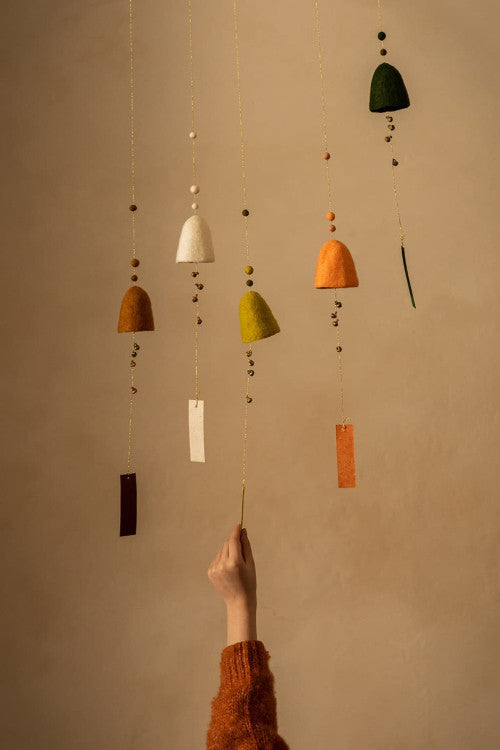 Suspension Cloche en feutre de chez Mushkane. Dotée d'une petit clochette.