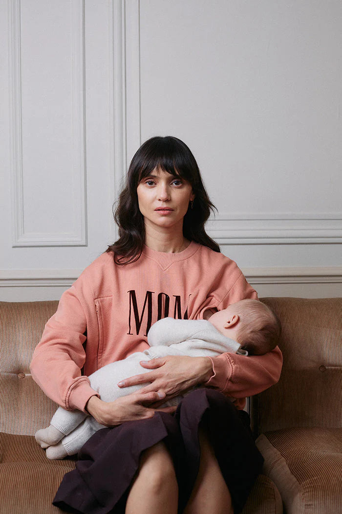 Sweat allaitant de chez Tajine Banane, Mom d'amour. Coloris rose. Coupe loose, prenez votre taille habituelle