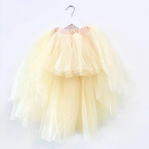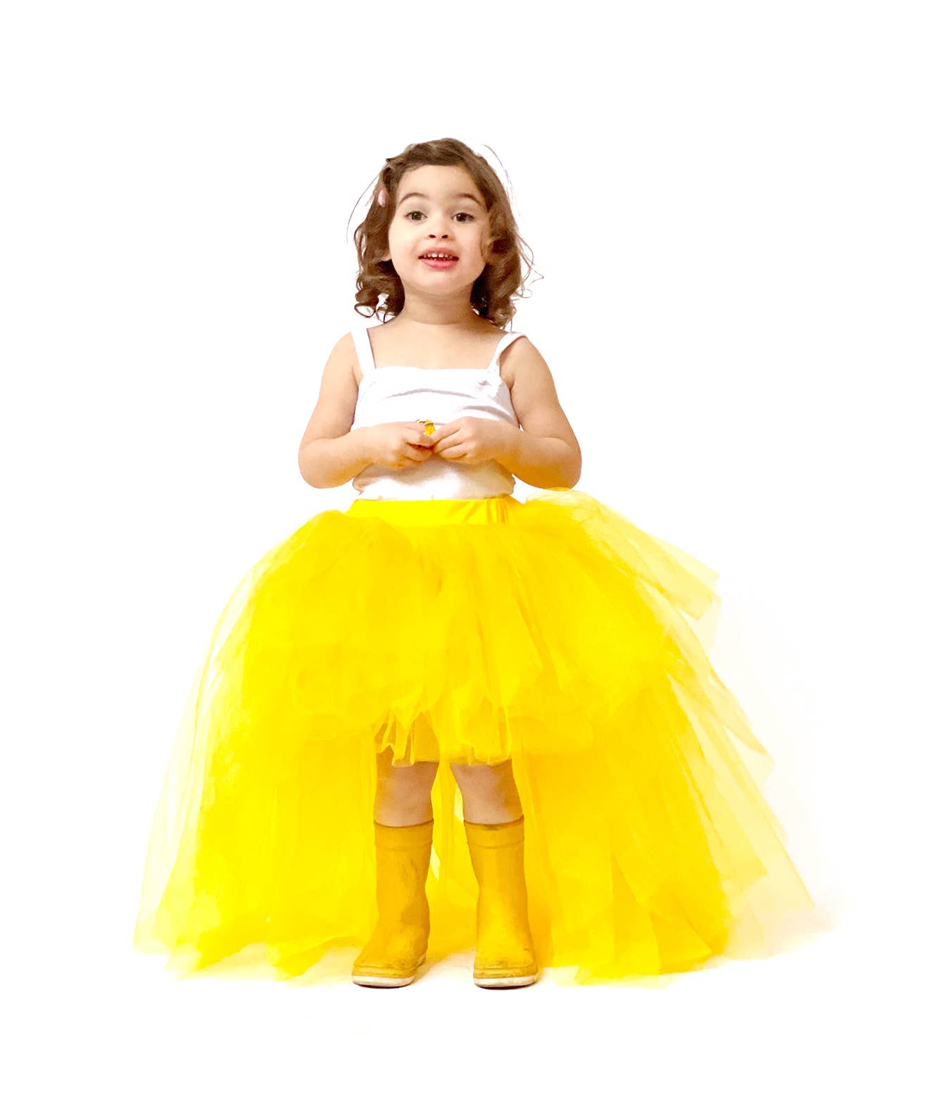 Un tutu rock, court devant et long derrière. Il est tout bouffant pour un effet princesse rock’n roll au top! Avec ce tutu, on peut courir, danser, escalader, sauter, bref s’éclater avec grâce et style bien sûr ! Taille unique Taille élastique, convient aux enfants de 4 à 8 ans 100% polyester Sur les photos : la petite fille a 3 ans et la grande fille a 6 ans.