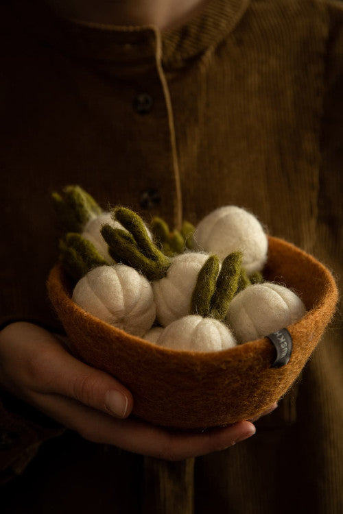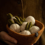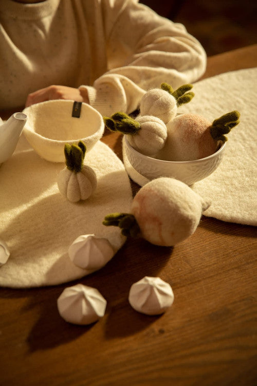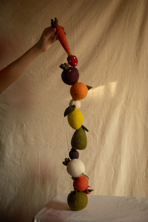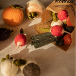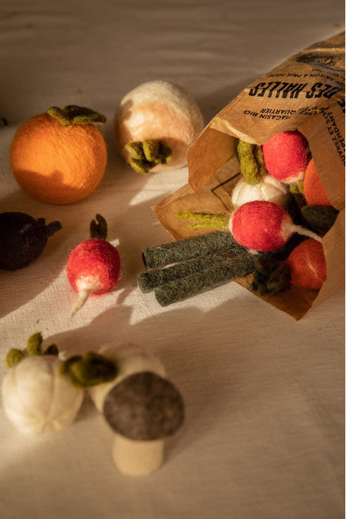 Fruits et légumes en feutrine de chez Mushkane.  Imitation parfaite pour une déco originale, douce ou coloré.