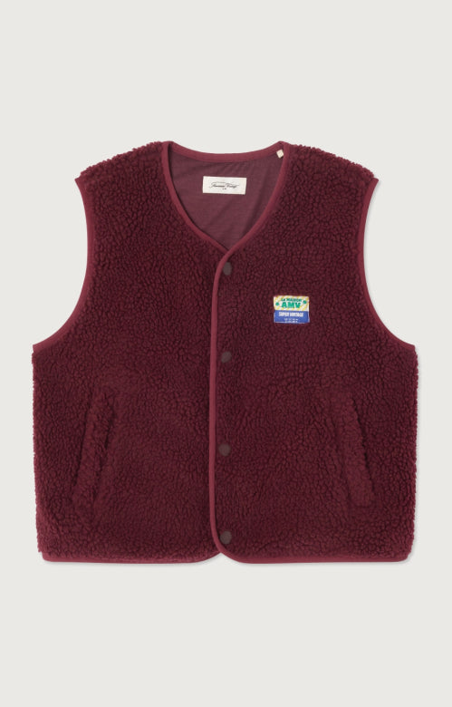 Veste sans manche American Vintage, sans col enfant. Fermeture à boutons, deux poches zippées.